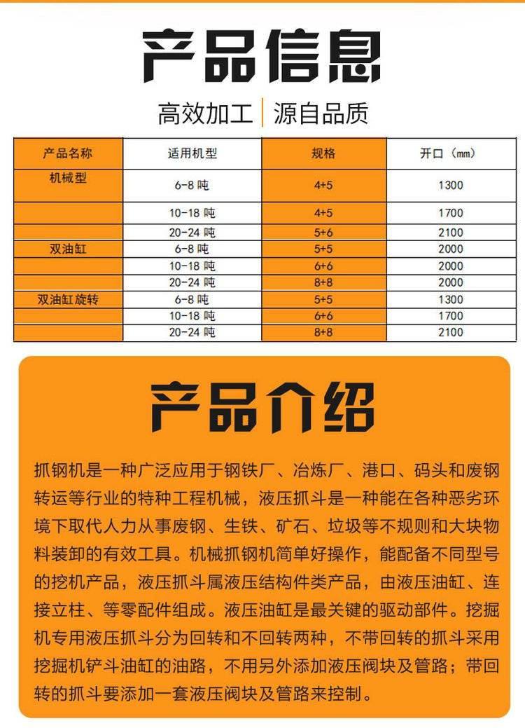 机械式抓钢机 多场景适用可定制 液压旋转夹石器 耐磨性高